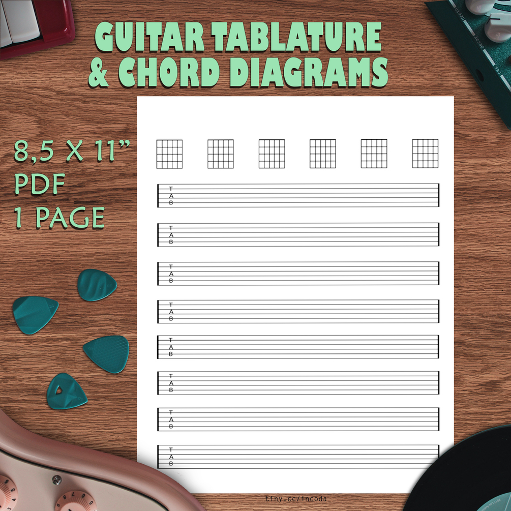 Blank Guitar Tab + Chords Diagrams | Printable 8.5 x 11 PDF | KDP interior element